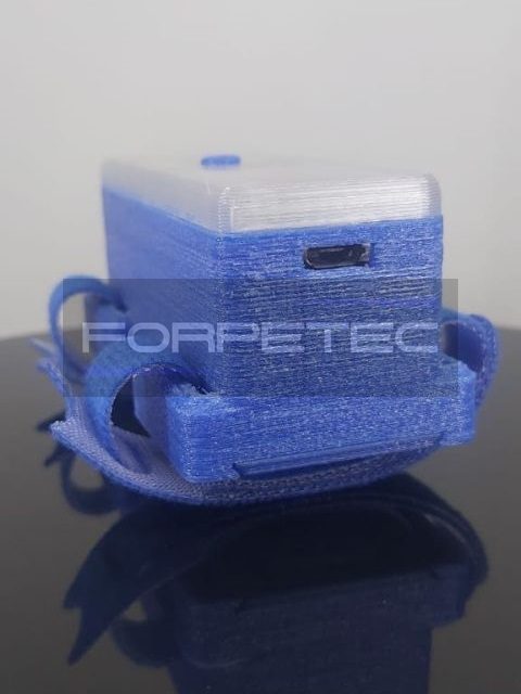 This unit is designed for a 4.2V 18650 Li-ion battery (not included). Its runtime will depend on the battery capacity (approximately 10 hours for a 2000mAh battery). It also includes a charger for single-cell Li-ion batteries with a micro-USB connection (micro-USB cable included). The PETG casing features a cover for easy battery access, which is a significant advantage for battery replacement. This unit also includes two micro-Velcro straps for easy installation.