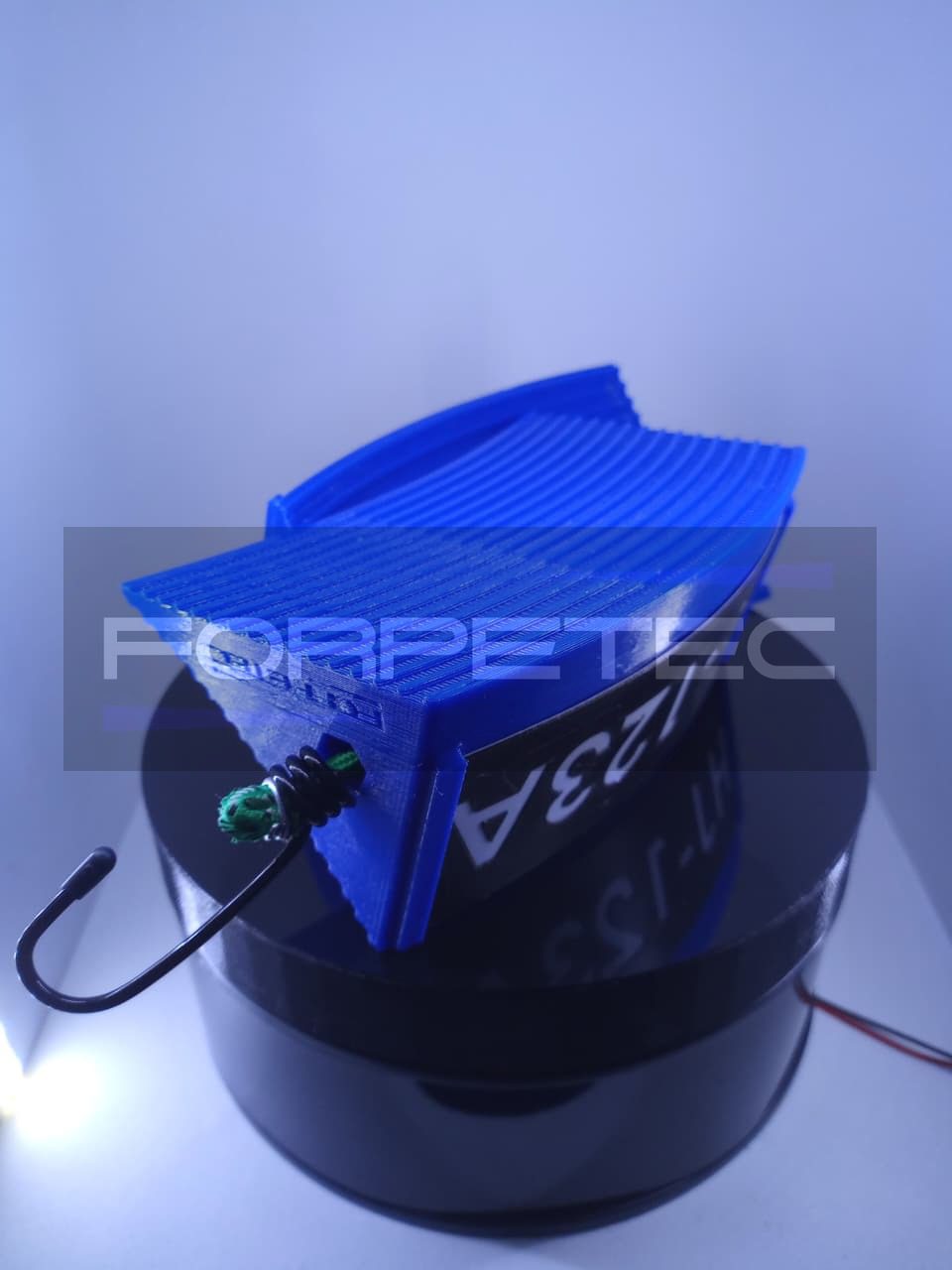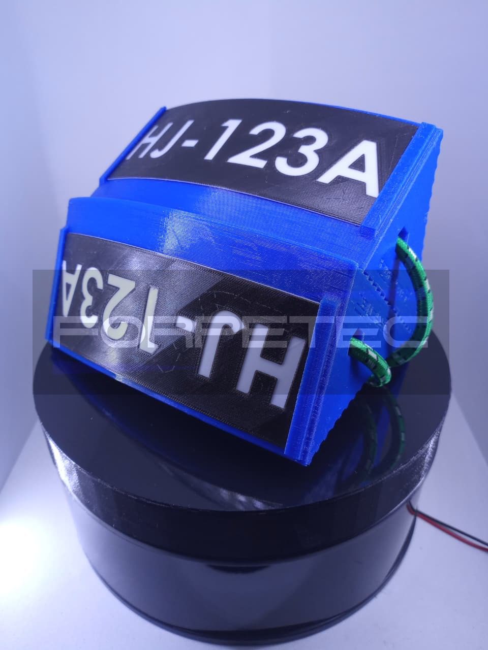 2 sets of 2 pieces made of PETG material. They are joined by an elastic rope with metal hooks. Each one has a customizable plate with the plane's registration number.