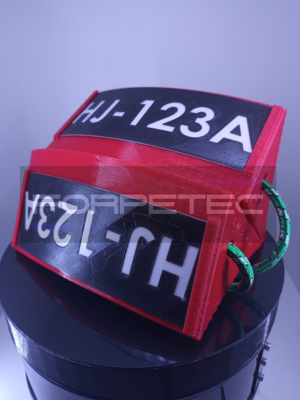 2 sets of 2 pieces made of PETG material. They are joined by an elastic rope with metal hooks. Each one has a customizable plate with the plane's registration number.