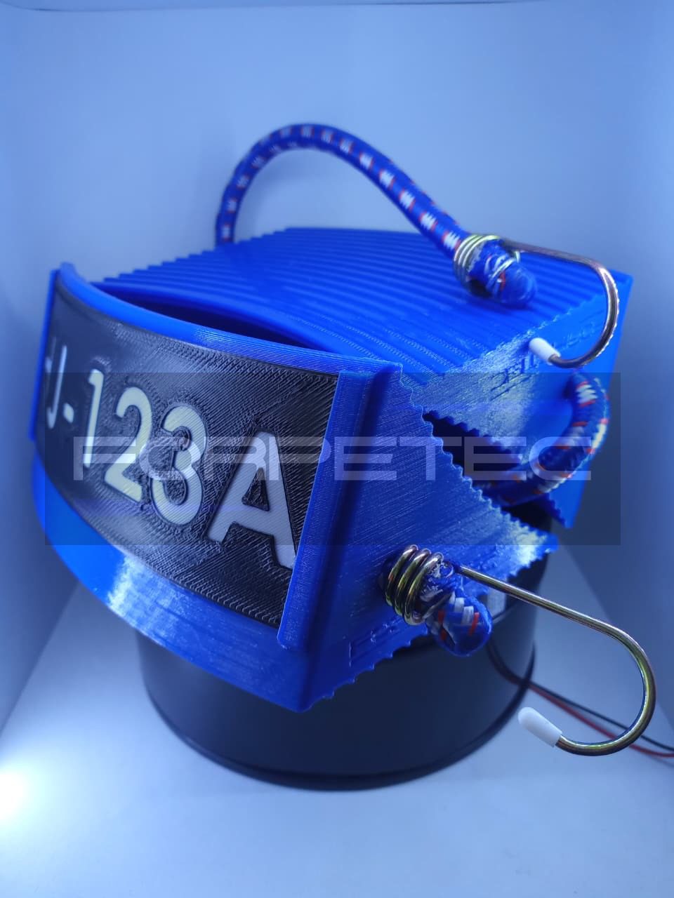 Set of 2 pieces made of PETG material. They are joined by an elastic rope with metal hooks. Each one has a customizable plate with the plane's registration number.