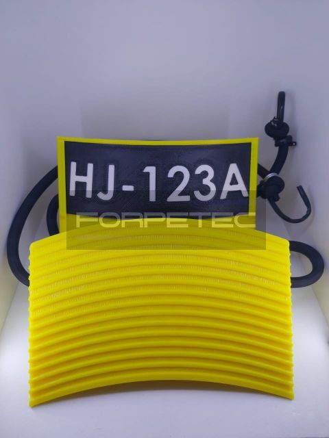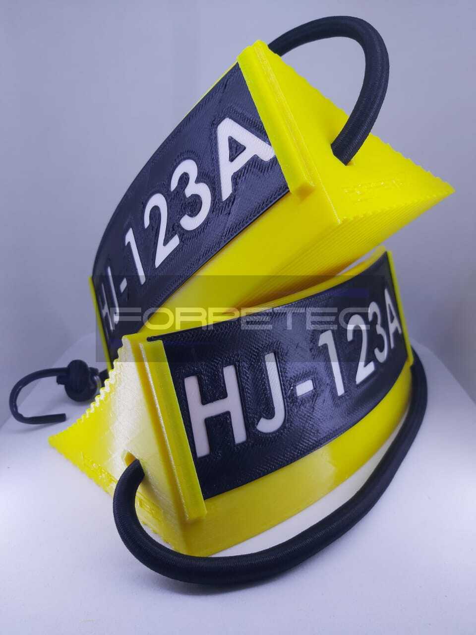 2 sets of 2 pieces made of PETG material. They are joined by an elastic rope with metal hooks. Each one has a customizable plate with the plane's registration number.