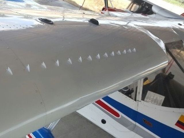Los Generadores de Vórtice son aditamentos que mejoran el desempeño del perfil alar y la estabilidad del vuelo en bajas velocidades, ya que crean micro vórtices que retrasan el desprendimiento del flujo de aire sobre el ala, reduciendo así la velocidad de entrada en pérdida sin afectar el desempeño en vuelo recto y nivelado. Estos elementos también se pueden instalar en los estabilizadores, donde se percibe mejora en la respuesta de elevador y timón a bajas velocidades.